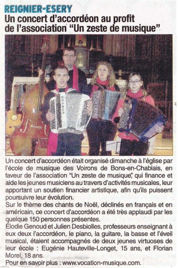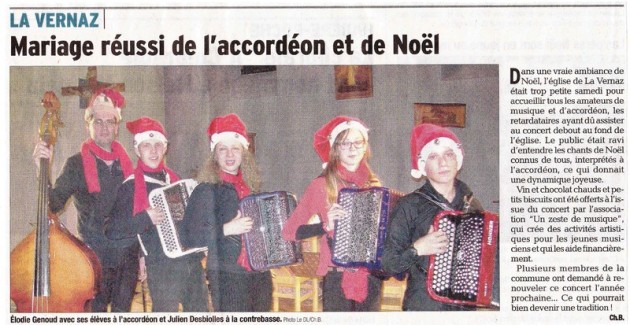 Grand succès pour les deux concerts de Noël à la Vernaz et à Reignier, voici des photos et articles de journaux...